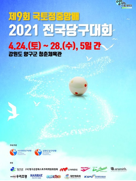 코로나 로 잠시 주춤했던 당구대회가 국토 정중앙배 당구대회로 다시 기지개를 켠다.