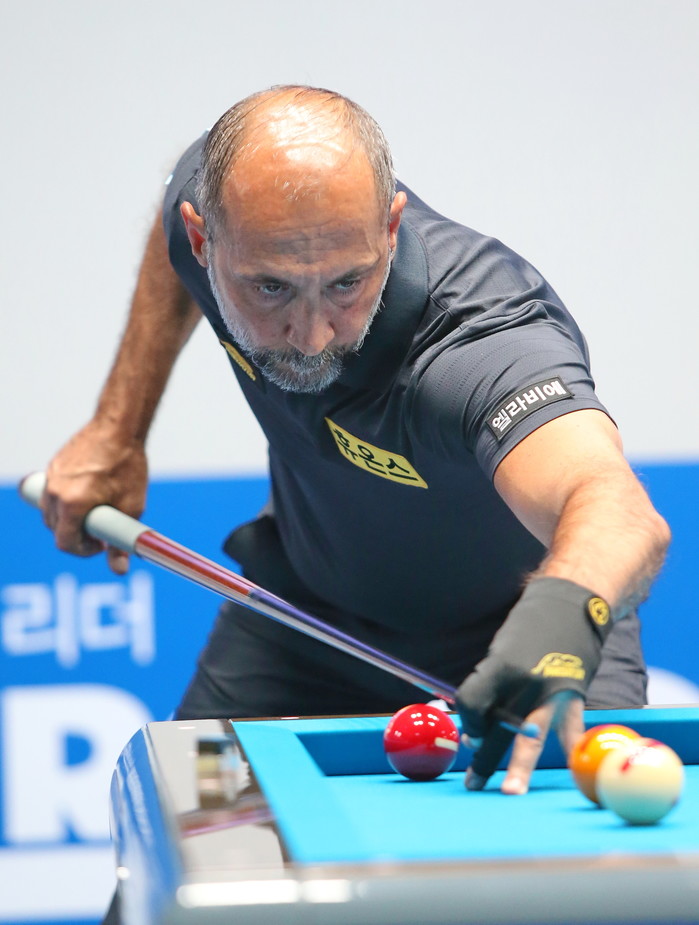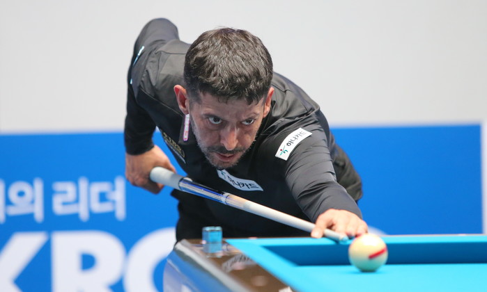4일 경기도 안산 상록수체육관에서 열린 프로당구 2023-24시즌 2차투어 ‘실크로드&안산 PBA-LPBA 챔피언십’ PBA 128강 1일차서 산체스는 ‘스페인 후배’ 다비드 마르티네스(크라운해태)와 승부치기까지 가는 접전 끝에 승부치기 스코어 0:1로 패배, 첫 판서 탈락했다.