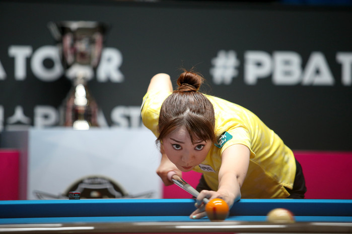 결승서 사카이와 김민아는 경기 초반부터 팽팽하게 맞섰다. 김민아가 먼저 한 세트를 앞서면 사카이가 재빠르게 한 세트를 따라붙으며 승부의 균형을 맞추는 양상이었다. 첫 세트는 김민아가 기선을 잡았다. 초반 4이닝만에 8:1로 크게 앞선 김민아는 이후 5이닝동안 공타에 머물러 사카이에 추격을 허용, 8:8 동률을 이뤘으나 10이닝째 행운의 뱅크샷을 포함해 남은 3점을 채워 11:8로 승리했다.