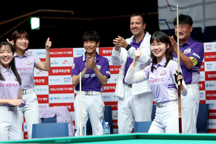 [Brilliant Billiards=유성욱 기자] PBA 팀리그 하이원리조트가 ‘영건’ 부라크 하샤시(튀르키예)의 맹활약에 힘입어 3라운드 2연승을 질주했다. 7일 경기도 고양시 ‘고양 킨텍스 PBA 스타디움’에서 열린 ‘웰컴저축은행 PBA 팀리그 2024-25’ 3라운드 이틀차 경기서 하이원리조트는 하나카드를 상대로 세트스코어 4:0 완승했다. 이로써 전날 SK렌터카를 상대로 4:0 완승을 거둔 하이원은 이틀 연속 완승을 거두며 2승(승점6) 단독 선두에 올랐다.