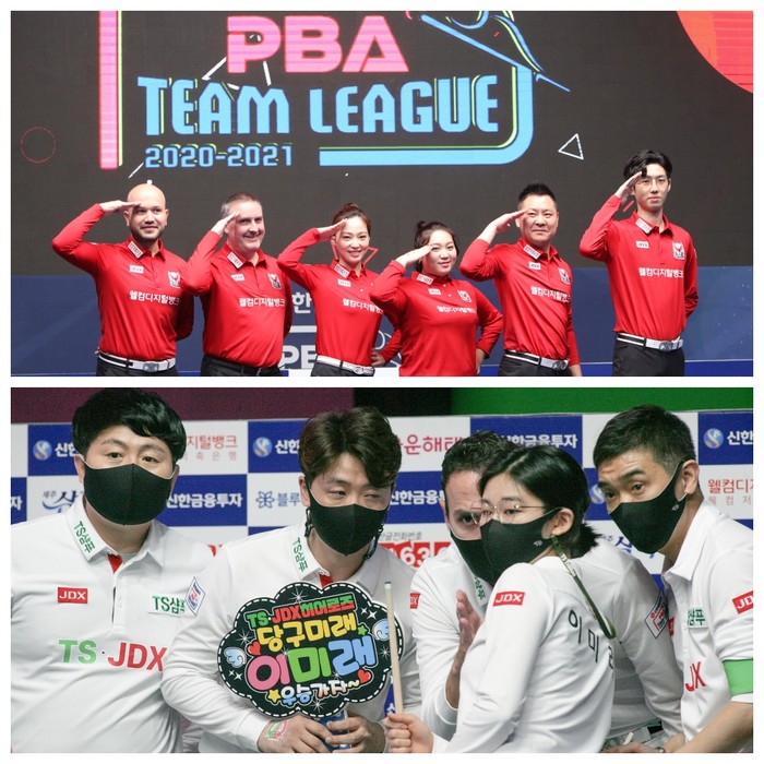 세계적인 코로나로 인해 한해 무관중 경기를 치러온 PBA는 2월 한달 내내 이어지는 당구축제에 상금 10억을 내놓는다. 1일부터 5일까지는 팀리그 6라운드를 통해 포스트시즌으로 갈 4개팀이 결정된다. 이어 18일부터 22일까지는 팀리그 준플레이오프,플레이오프 ,파이널로 이어져 첫해 팀에게 주어지는 1억원이 수여된다. 준플레이오프는 3-4위간 3전 2선승제,프레이오프는 이들의 승팀과 2위와의 5전 3선승제, 마지막 파이널은 7전 4선승제로 진행될 예정이다. 지금까진의 랭킹은 웰컴저축은행 웰빙 피닉스가 승점 41로 1위이고 TS.JDX히어로즈가 승점 37점으로 2위. 두팀의 승점차는 4점으로 오늘시작되는 두 번째경기에서 도망가느냐 좁히느냐가 판가름난다. 3위는 승점 36점으로 SK렌터카 위너스 4위는 승점 31점의 신한알파스로 첫경기에서 SK렌터카 위너스가 2위로 도약할수 있느냐가 주목된다.