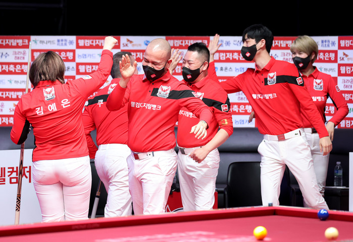 반드시 승리하고, 블루원리조트가 웰컴저축은행에 패배해야만 포스트시즌에 진출할 수 있었던 NH농협카드로선 뼈아픈 패배였다. 출발은 완벽했다. NH농협카드는 TS샴푸·푸라닭과의 경기 선봉 조재호-김현우 조합이 조재호의 퍼펙트큐로 완승한 데 이어 2세트 김보미-김민아가 용현지-이미래를 9:6(6이닝)으로 물리치면서 빠르게 격차를 벌렸다.