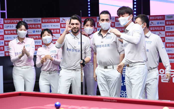 [Brilliant Billiards=유진모 기자] PBA 팀리그의 남은 포스트시즌 진출권 한 장이 결국 블루원리조트에 돌아갔다. 14일 경기도 고양시 소노캄고양에서 열린 ‘웰컴저축은행 PBA 팀리그 2022-2023’ 6라운드 최종일서 블루원리조트는 공동2위 NH농협카드가 TS샴푸·푸라닭에 패배하면서, 최종일 남은 경기 결과에 관계 없이 후기리그 준우승을 확정했다.