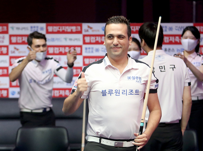 한편, 블루원리조트의 다비드 사파타(스페인)가 하나카드와의 경기 1세트 남자복식서 한 큐 15점을 뽑아내는 ‘퍼펙트큐’를 달성했다. 3세트에서도 응우옌 꾸억 응우옌(베트남)을 제압한 사파타의 2승 활약에 힘입어 블루원리조트는 세트스코어 3:0으로 앞서갔으나, 이후 하나카드에 네 세트를 내리 내주며 아쉬운 역전패를 당했다.