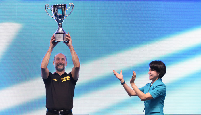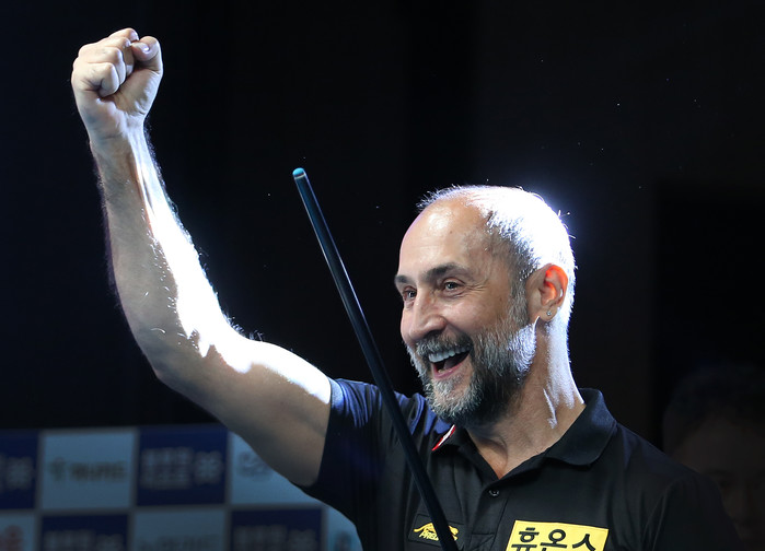 [Brilliant Billiards=서형석 기자] 마침내 ‘미스터 매직’ 세미 세이기너(58·튀르키예, 휴온스)의 ‘경주 매직’이 이뤄졌다. 프로당구(PBA) 최초로 데뷔 첫 투어에서 우승컵을 들어올렸다. 19일 밤 경주 블루원리조트에서 열린 ‘경주 블루원리조트 PBA-LPBA 챔피언십’ PBA 결승전서 세이기너는 이상대(웰컴저축은행)를 맞아 압도적인 경기력으로 세트스코어 4:0(15:5, 15:0, 15:12, 15:5)으로 물리치고 대회 정상을 밟아 우승상금 1억원의 주인공이 됐다.