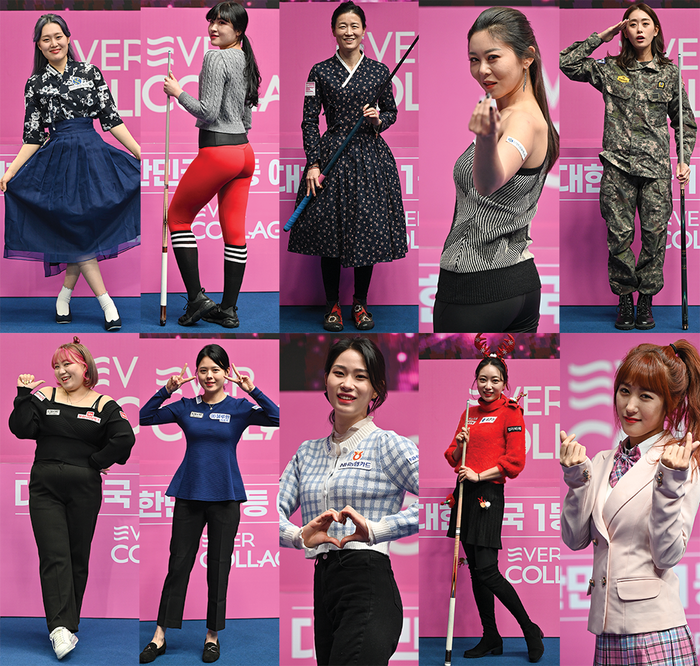 당구대 앞에 나섰다. 캐주얼, 한복, 교복, 레깅스 등 다양한 패션 뽐낸 LPBA 선수들.