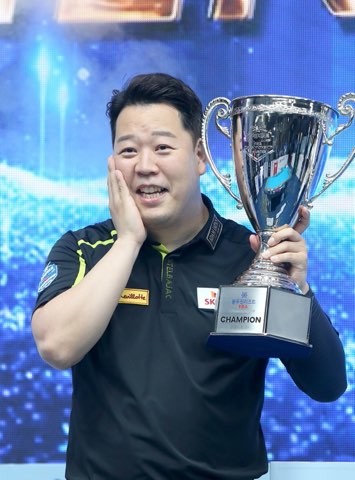 <PBA NEWS>21밤 10시부터 벌어진 21-22PBA 블루원리조트 개막전 투어 PBA 결승에서 지난 3월 월드참피언십에서 결전을 벌였던 사파타(블루원리조트)와 강동궁(SK렌터카)이 재격돌하며 장장 3시간여의 대접전 끝에 헐크 강동궁이 세트스코어 4대 3(15-3,15-10,15-9,2-15,14-15,13-15,9-11)으로 역전승을 거두며 월드참피언십에서 이루지 못한 참피언의 트로피를 거머쥐었다