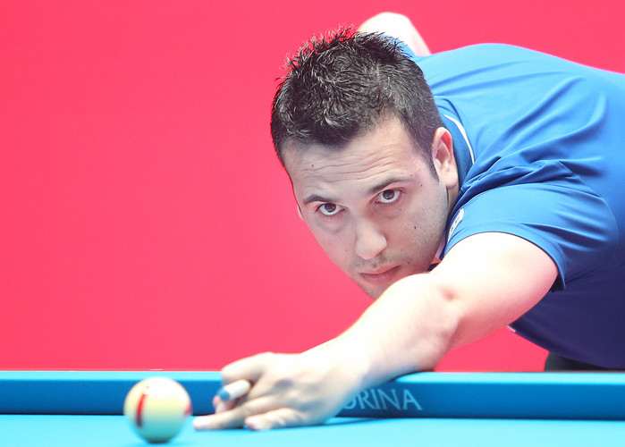 사파타는 초반 두 세트를 내주며 부진했으나 이후 집중력을 되찾고 내리 4세트를 따내며 역전승을 거두었다. 상대 호프만이 공타 없이 15:13(9이닝)으로 첫 세트를 따낸 데 이어 2세트에서도 3-3-9점을 연달아 터뜨리며 3이닝만에 15:5로 승리했다.