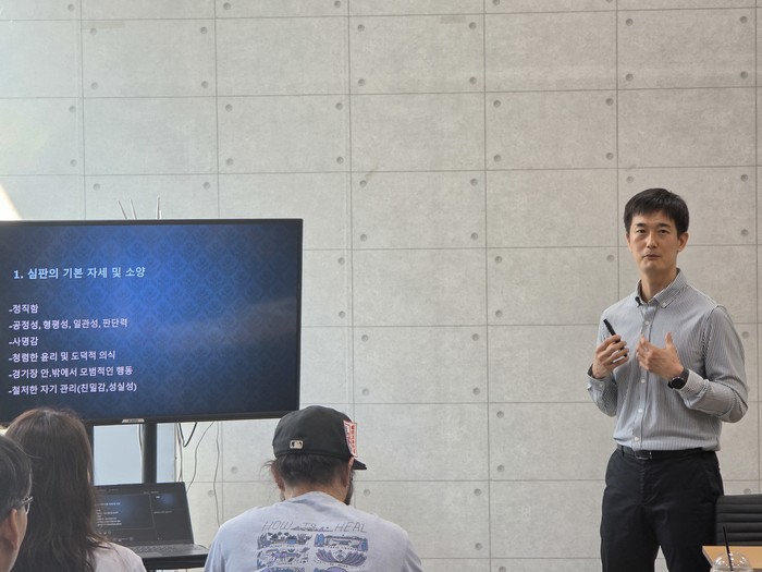 PBA 경기원 및 심판 등 총 40여명이 참석한 이번 교육은 2025-26시즌 경기 시스템(스코어보드) 및 경기규정 변경 등 차질없이 대회를 운영하기 위한 교육에 주안점을 두고 진행됐다. 이날 교육서는 경기 규정, 스코어보드 사용법 등에 대한 이론 교육을 시작으로 이번 시즌부터 교체되는 경기운영시스템을 적용해 실전 경기 운영 교육 등 실기 교육이 이어졌다. 이어 대한축구협회(KFA)에서 활동중인 고형진 심판이 소양 교육을 진행했다. 고형진 심판은 스포츠 심판으로서 갖춰야 할 자세와 소양, 덕목 등을 교육했다. 끝으로 이번 시즌 경기원과 심판들을 대상으로 PBA 임정완 경기위원장과 현지원 심판위원장이 경기원들과 심판들을 대상으로 위촉장 및 시즌 심판복-경기원복(후원사 ‘끌라’)을 전달했다.