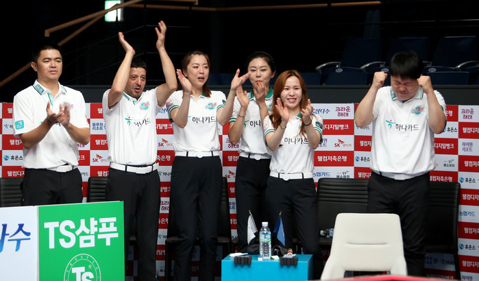 이날 하나카드는 7세트에 배정된 주장 김병호를 제외한 팀원 모두가 고른 활약을 펼치며 팀 승리에 기여했다. 첫 세트서는 무랏 나시 초클루(튀르키예)와 신정주가 다비드 사파타(스페인)-엄상필을 3이닝만에 11:7로 제압하면서 순조롭게 출발한 데 이어, 2세트서는 김진아와 사카이 아야코(일본)가 서한솔-김민영을 상대로 14이닝만에 9:4로 승리했다. 3세트서도 응우옌 꾸억 응우옌(베트남)이 하이런 8점을 쓸어담아 사파타를 15:8(8이닝)로 돌려세웠다. 세트스코어 3:0 하나카드의 리드.