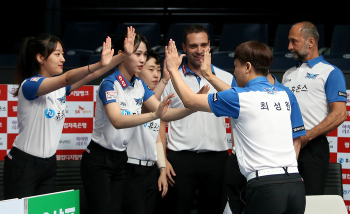 이밖에 ‘우승 후보’로 거듭난 휴온스도 NH농협카드를 세트스코어 4:1로 꺾었다. 최근 매서운 기세를 뽐내고 있는 하비에르 팔라존(스페인)이 2승으로 팀 승리를 견인했다. 휴온스는 2연승으로 공동2위(승점7)로 올라섰다. 반면 NH농협카드는 2연승 후 첫 패배를 기록했다.