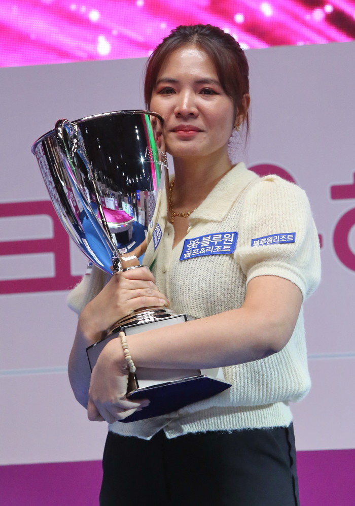네번째 우승을 거머쥔 스롱피아비가 눈물을 머금은 채 우승컵을 꼭 껴안고 있다