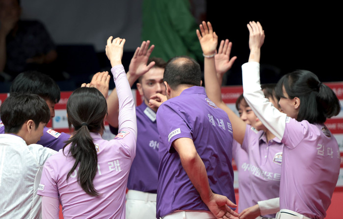 이날 우리금융캐피탈은 팀원 7명이 전원 승리에 기여해 의미있는 첫 승을 만들었다. 첫 세트서 강민구-엄상필이 서현민-최원준1을 3이닝 만에 11:7로 꺾은 승리를 시작으로 2세트 스롱 피아비(캄보디아)-서한솔이 이우경-한지은을 9:5(9이닝), 3세트 다비드 사파타(스페인)가 서현민을 15:10(9이닝), 4세트 혼합복식에서 선지훈과 김민영이 최원준1-한지은을 9:7(9이닝)로 제압하며 완벽한 승리를 챙겼다.
