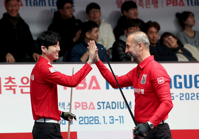 [Brilliant Billiards=유성욱 기자] PBA 팀리그 하이원리조트가 2승을 쓸어담은 륏피 체네트(튀르키예)를 앞세워 2연승을 질주, 5라운드 선두에 올라섰다. 4일 경기도 고양시 ‘고양 킨텍스 PBA 스타디움’에서 열린 ‘웰컴저축은행 PBA 팀리그 2025-2026’ 5라운드 2일차서 하이원리조트는 에스와이를 풀세트 끝에 4:3으로 승리했다.