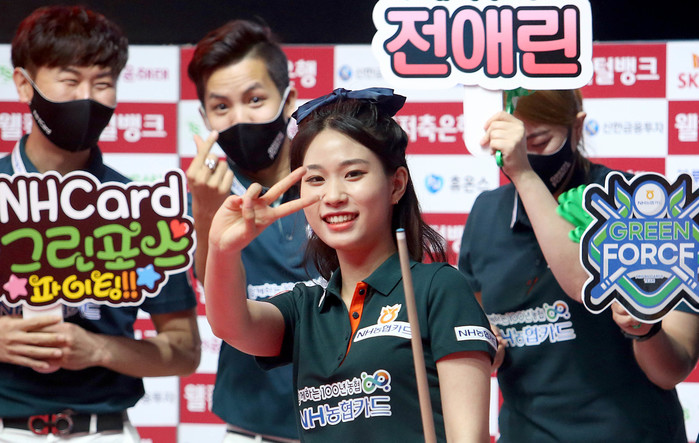 ▲애교도 만점 NH 농협카드 전애린 3전3승에 애버리지 3.667기록,<사진제공=PBA 사무국> |