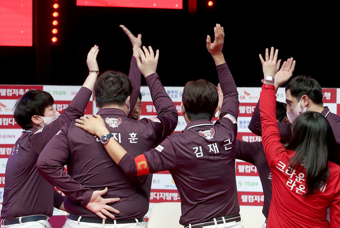 크라운해태는 첫 세트 승리를 시작으로 2세트서 강지은이 최혜미를 11:4(11이닝)로 누르며 2:0으로 앞섰으나, 곧바로 팔라존이 3세트서 이영훈을 15:5(11이닝), 글렌 호프만(네덜란드)-김세연이 4세트서 초반 ‘하이런 7점’을 앞세워 김재근-백민주에 15:10(13이닝)로 승리하며 2:2 동률을 이뤘다.