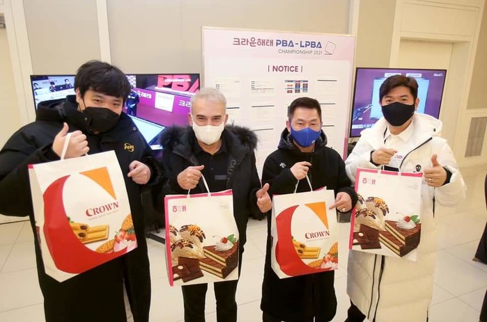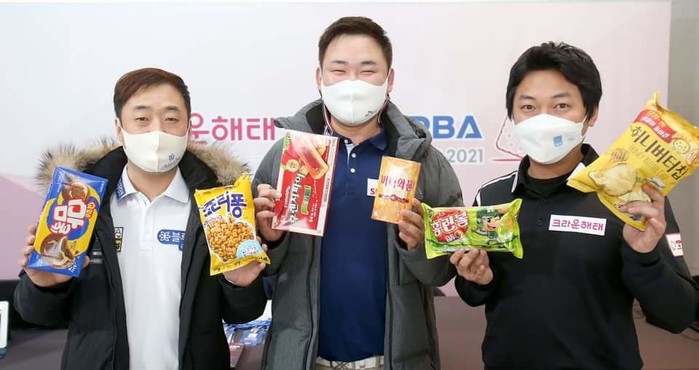 <브릴리언트 빌리어드=김철호기자> 19일부터 23일까지 강서구 메이필드호텔에서 열리는 크라운해태 PBA-LPBA 챔피언십 2021에 스폰서인 크라운해태가 통큰 선물을 준비했다. 이번 대회에 참가하는 모든선수들에게 자사에서 생산하는 과자류를 선사한 것이다.