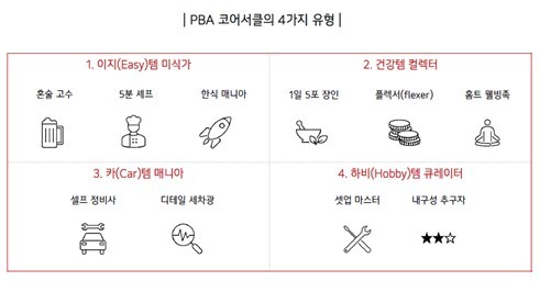 - 이지(Easy)템 미식가 : 비교적 짧은 조리 시간으로 섭취할 수 있는 간편식 위주 식품을 선호하는 PBA 슈퍼팬들