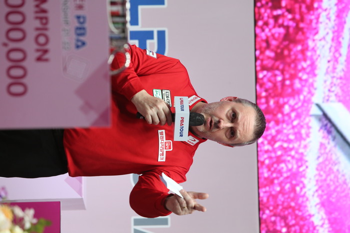 특히 2세트째 추격에 나선 사파타가 초구를 놓친 쿠드롱의 실수를 틈타 5득점으로 힘있게 앞섰으나. 쿠드롱이 한 큐에 15득점을 채워 세트를 마무리지으며 15:5, ‘퍼펙트큐’를 완성한 쿠드롱의 세트 애버리지는 무려 7.500. 웰빙톱랭킹에 올라와 시상을 기다리던 마민캄(블루월리조트)의 기록도 깨부숴버릴 기세였지만 이어진 3,4,5세트에서 이어지지 못해 우승과 톱랭킹을 한꺼번에 거머쥐는 진기록은 수립되지 못했다.