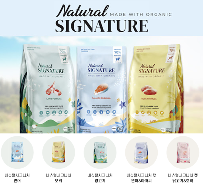 내추럴 시그니처는 반려동물의 건강을 고려해 화학보존제나 유전자 변형 농산물이 들어가지 않은 고급 유기농 원료로 제조한 오가닉(ORGANIC) 제품이다. HACCP(식품안전관리인증기준) 인증, USDA-NOP(미국 농무부 유기농 인증) 인증, FIPA 인증도 모두 취득하며 프리미엄 펫푸드 브랜드로서 품질을 인정받고 있다.