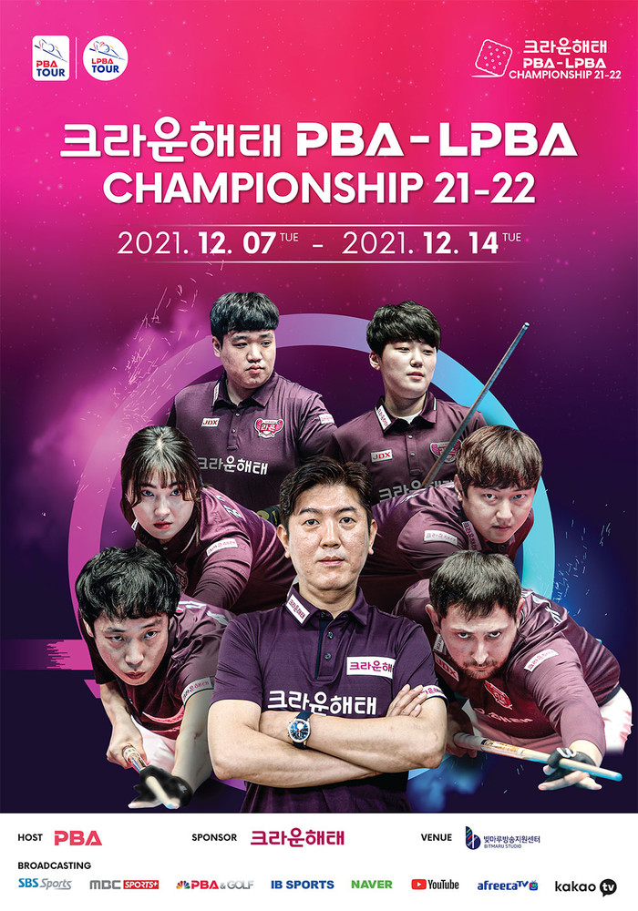 PBA는 3일 오후 ‘크라운해태 PBA-LPBA 챔피언십’ 대진표를 발표하고 7일 LPBA PQ(Pre-Qualifying) 및 64강으로 대회 출발, 8일 오후 3시 개막식과 PBA 128강전을 시작으로 본격적인 대회 일정에 돌입한다