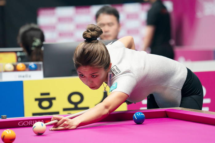 첫 세트를 따낸 김가영은 2세트서도 5이닝부터 7이닝까지 6득점을 몰아치며 8:2로 승기를 잡았고, 9이닝째 3득점을 더해 11:2로 격차를 벌렸다. 이어 3세트서도 4이닝째 4득점, 5이닝째 3득점으로 7:1 크게 리드했고, 7이닝째 3득점과 8이닝째 1득점을 추가해 11:3 경기를 세트스코어 3:0으로 마무리했다.
