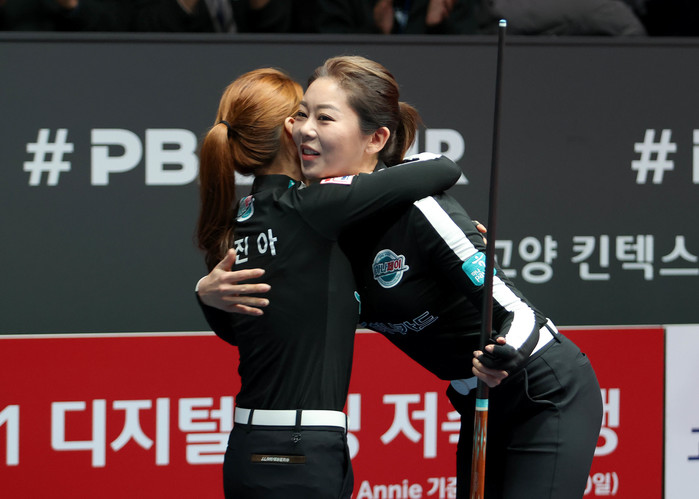 이날 하나카드는 포스트시즌 진출을 놓고 경쟁하던 웰컴저축은행에 승리해 중요한 고비를 넘었다. 특히 ‘베트남 특급’ 응우옌꾸옥응우옌의 활약이 빛났다. Q.응우옌은 첫 세트서 신정주와 호흡을 맞춰 비롤 위마즈(튀르키예)-서현민을 11:4(7이닝)로 꺾은 데 이어 2세트서 김가영-김진아, 3세트서 무라트 나지 초클루(튀르키예)가 승리를 보태 빠르게 3:0으로 달아났다. 하나카드는 4세트서 초클루와 사카이 아야코(일본)가 서현민-최혜미에 6:9(7이닝)로 패배했으나 곧바로 5세트서 Q.응우옌이 위마즈를 9이닝만에 11:7로 제압, 경기를 세트스코어 4:1 승리로 마무리했다.