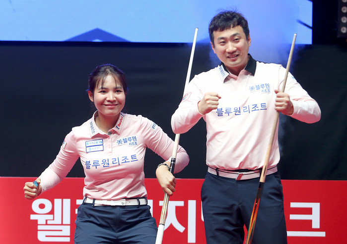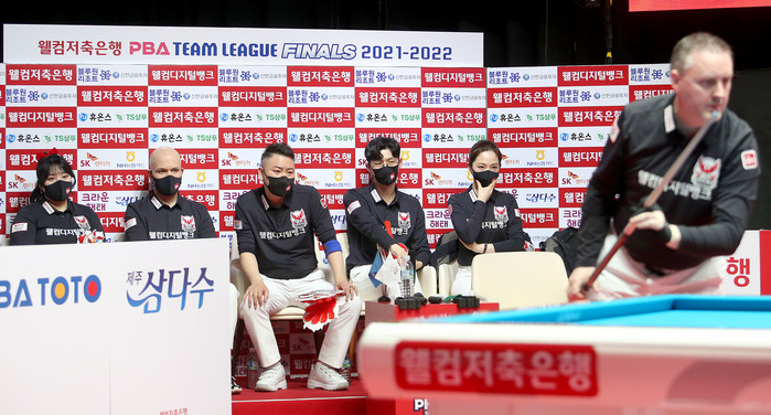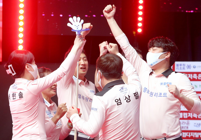 [Brilliant Billiards=강경석 기자] 블루원리조트가 PBA팀리그 파이널서 1승을 추가하며 웰컴저축은행 추격에 시동을 걸었다. 15일 밤 경기도 고양시 빛마루방송센터에서 열린 ‘웰컴저축은행 PBA팀리그 2021-22’ 파이널 4차전서 블루원리조트는 웰컴저축은행을 세트스코어 4-0 완승을 거두고 종합성적 2승3패로 추격했다. 반면, 우승까지 1승을 남겼던 웰컴저축은행은 이날 무기력하게 패배, 우승 기회를 파이널 5차전으로 미뤘다.
