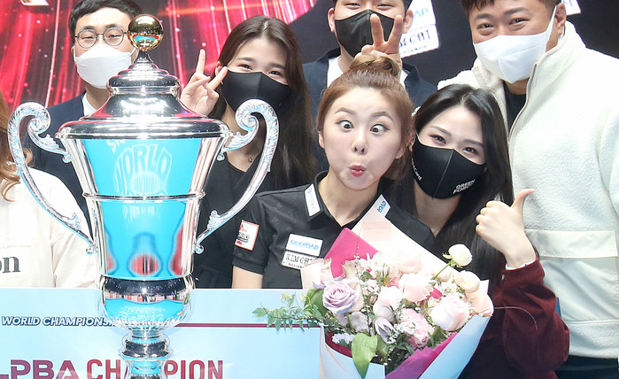 "역시 스타" 월드챔피언십 우승 김가영 코믹한 표정 눈길