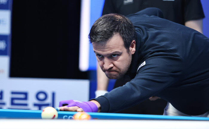 [Brilliant Billiards=서형석 기자] ‘미스터 매직’ 세미 세이기너(튀르키예·휴온스)가 화려한 데뷔전으로 승리를 거뒀다. 14일 경주 블루원리조트에서 열린 ‘경주 블루원리조트 PBA-LPBA 챔피언십’ PBA 128강 2일차 경기서 세이기너는 서현민을 상대로 3:0(15:3, 15:10, 15:11) 완승을 거두고 데뷔전 승리를 챙겼다.