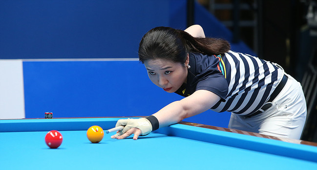 ▲ Photo / 초대 프로 여왕으로 등극한 김갑선선수가 1적구를 노려보며 조준하고 있다 |