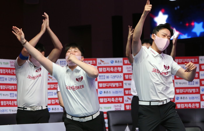 [Brilliant Billiards=김철호 기자] 26일 강원도 춘천시 엘리시안강촌에서 열린 ‘웰컴저축은행 PBA 팀리그 2022-23’ 3라운드 둘째날 공동3 2위에 랭크되어있는 크라운해태와 월컴저축은행의 경기에서 월컴저축은행이 3세트를 내리 이기며 손쉬운 경기를 펼치더니 크라운해태의 마르티네스와 백민주의 2승에 힘있어 3대3 동점을 만든후 7세트에서 크라운해태 팀리더 김재근의 활약으로 4대 3역전승을 거두며 단독 2위로 올라서며 전반기 순위싸움에 앞서 나갔다