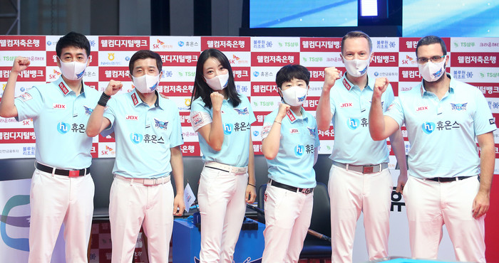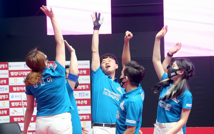 [Brilliant Billiards=김철호 기자] 10일 강원도 춘천 엘리시안강촌 스키하우스에서 열린 ‘웰컴저축은행 PBA팀리그 2021-22’ 3라운드 마지막 7일차 경기서 NH농협카드가 크라운해태와 세트스코어 3:3 무승부로 전기리그 준우승을 차지하며 플레이오프 티켓을 획득했다.