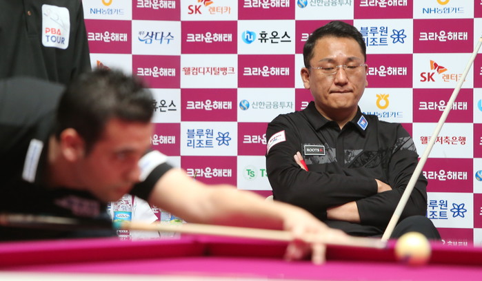 ▲4이닝 마지막 샷을 지켜보는 사파타 ,세트스코어 4대0으로 김영섭을 제치고 결승진출 |