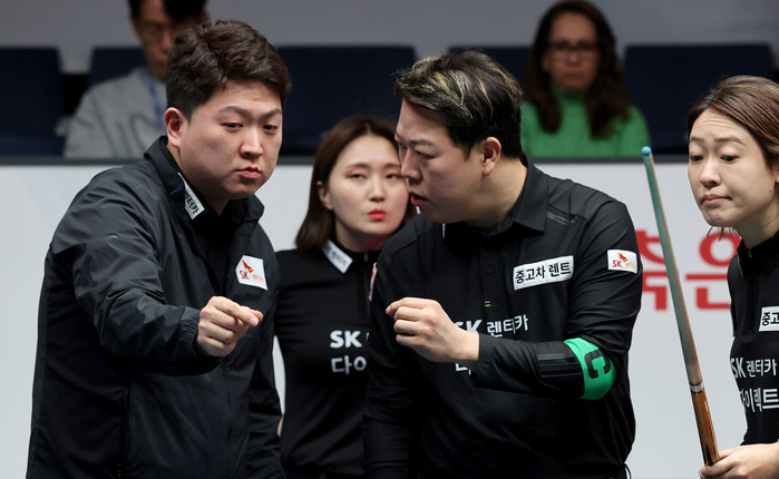 [Brilliant Billiards=김철호 기자] SK렌터카가 하나카드를 꺾으며 포스트시즌 파이널 직행 가능성을 높였다. 8일 경기도 고양시 ‘고양 킨텍스 PBA 스타디움’에서 열린 ‘웰컴저축은행 PBA 팀리그 2024-25’ 5라운드 2일차 경기서 SK렌터카가 하나카드를 상대로 세트스코어 4:2로 승리를 거두고 정규리그 전체 단독 선두로 올라섰다.