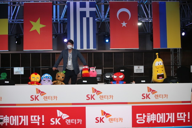 [브릴리언트 빌리아드=김철호 기자] 2020년 PBA 프로당구 1차투어가 열리고 있는 서울 광진구 워커힐호텔에서 3일째 경기가 이어져 오고 있다. 코로나 19의 영향으로 스포츠 전종목은 관중 없는 심심한 경기를 치르고 있다. 프로당구 경기도 비대면으로 진행하다 보니 선수들은 마스크를 착용해야 하고 관중 대신 인형이 그자리 차지하고 있다.