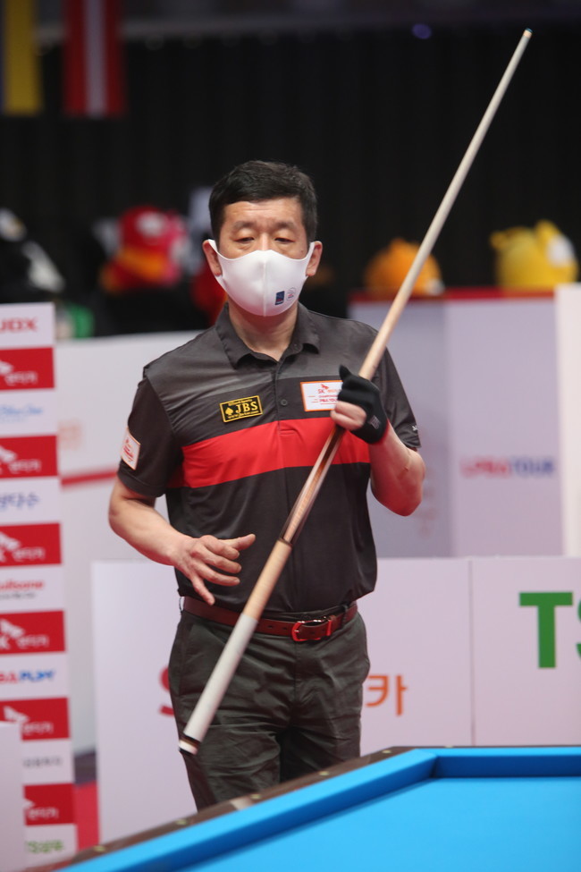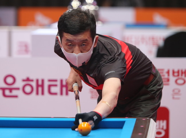 ▲ 역전승을 거둬 8강에 진출한 정호석이 볼을 주시하며 살피고 있다 |