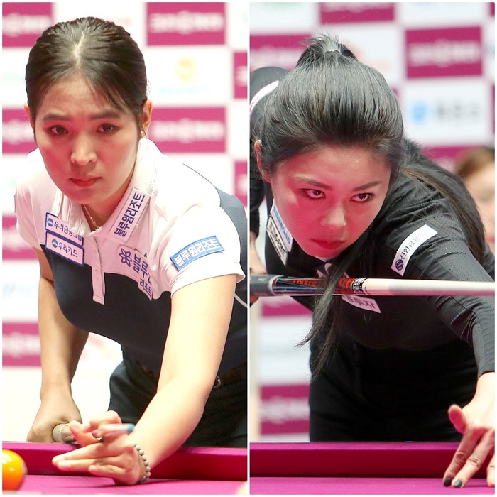 ▲ 8강전에서 운명의 한판을 벌이게 된 스롱피아비와 김가영<사진제공=PBA사무국> |