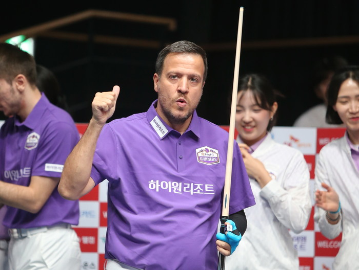 ▲ 하이원리조트 루피체넷이 2승째를 거두며 승리의 세러머니를 펼치고 있다,<Brilliant Billiards-김철호기자> |