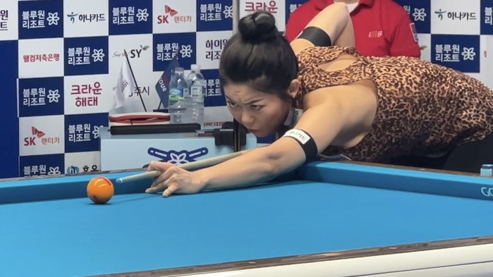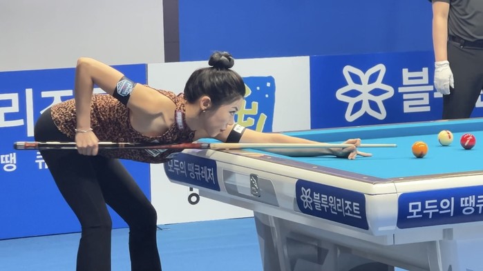 대회 내내 경기마다 남다른 패션센스를 활용해 경기복을 선보인 김가영은 이날 경기에서도 ‘호피무늬 민소매’ 경기복으로 출전, 팬들의 시선을 단번에 사로잡았다. 경기력도 월등했다. 세트스코어 3:0으로 승리하기까지 걸린 시간은 단 1시간에 불과했다.