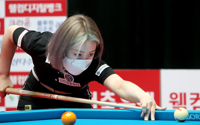 [Brilliant Billiards=강경석 기자] ‘당구 여제’ 김가영(신한금융투자)이 여자 프로당구 LPBA ‘연속 우승’에 청신호를 켰다.28일 오후 경기도 고양시 빛마루방송센터에서 열린 2021-22시즌 ‘웰컴저축은행 웰뱅 LPBA 챔피언십’에서 김가영은 최은진을 상대로 세트스코어 2:1(11:2, 9:11, 9:0)로 승리를 거두고 8강 진출에 성공했다. 이로써 직전 투어인 ‘NH농협카드 챔피언십’ 정상에 오른 김가영은 약 2개월 만에 대회 연속 우승을 향해 순항했다.