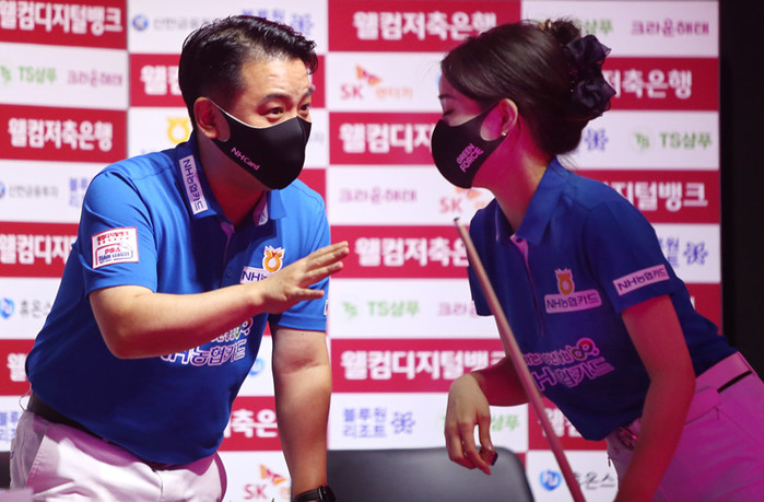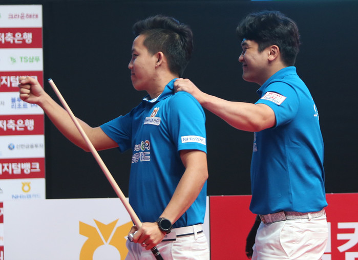 [Brilliant Billiards=김철호 기자] 경기도 고양 빛마루 방송지원센터에서 열리고 있는 웰컴저축은행 2021-2022 PBA 팀리그 1라운드가 7일 두번째경기 신생팀 NH농협카드와 강호 SK렌터카의 경기에서는 NH농협카드가 4대0으로 완승을 거두며 1승1무로 선두권을 유지했다. NH 농협카드의 남자복식에서 2이닝에 13점으로 하이런을 기록하고 이어 4이닝에 2점을 추가하여 혼자서 15점을 따내며 1승을 따내며 순조로운 출발을 예고 했다.