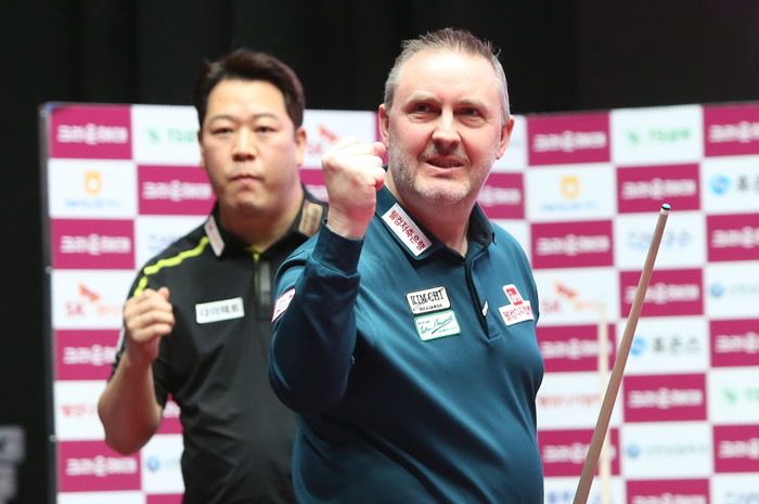 ▲ 강동궁을 뒤로 두고 볼을 조준하는 당구의 신 쿠드롱 |