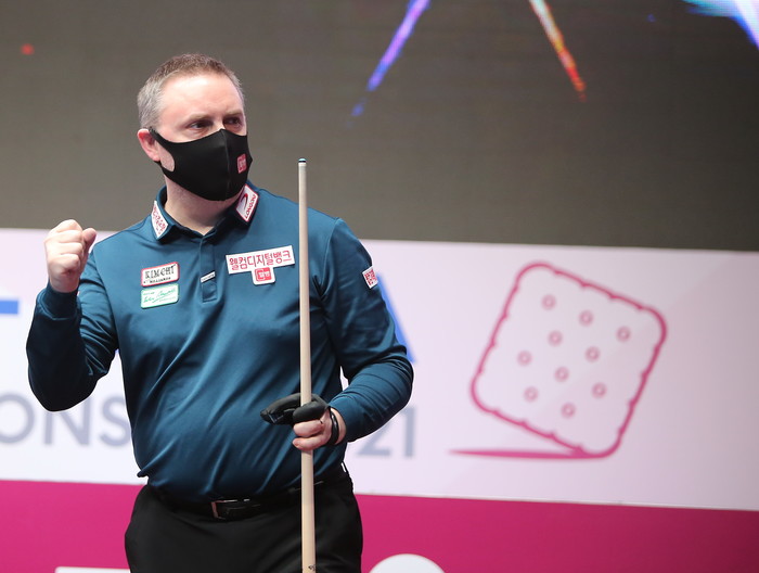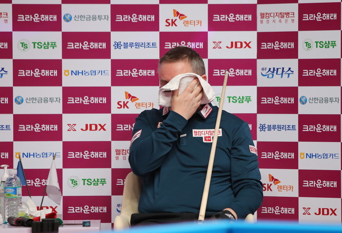 22일 강서구 메이필드 호텔에서 열린 PBA 크라운해태 참피온십 2021 남자부 8강 세 번째 경기 .3쿠션 황제 쿠드롱과 베트남 복병 응고딘 나이의 경기에서 1,2세트를 내주며 어려운 경기를 펼치던 쿠드롱은 3,4세트를 이기며 승부를 5세트 까지 끌고가며 어려운 경기를 펼쳤다. 5세트에서도 막상막하의 경기를 펼치던 쿠드롱은 결국 11점을 먼저 따내며 힘든 경기를 마쳤다. 평소 경기가 안 풀릴때면 수건으로 얼굴을 닦던 쿠드롱은 오늘경기에서 연신 수건으로 땀을 닦는 모습을 보였다.