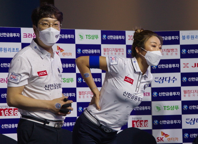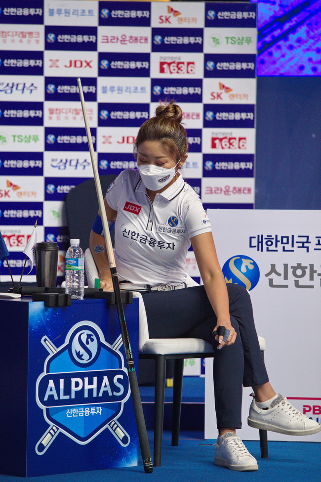 ▲ 신한 알파스의 주장 김가영선수가 동료 선수경기를 지켜보고 있다 |