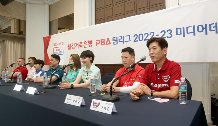[Brilliant Billiards=김철호 기자] 프로당구협회(PBA·총재 김영수)는 3일 오후 서울 중구 프레스센터에서 ‘웰컴저축은행 2022-23시즌 PBA팀리그 미디어데이’를 진행했다. 이날 각 팀을 대표하는 선수들이 참석해 새 시즌을 맞는 출사표를 던졌다.