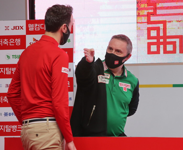 PBA월컴저축은행 참피온십 준결승 두 번째 경기였던 당구천재 그리스의 카시도 코스타스와 당구의 신 쿠드롱과의 경기는 세트스코어