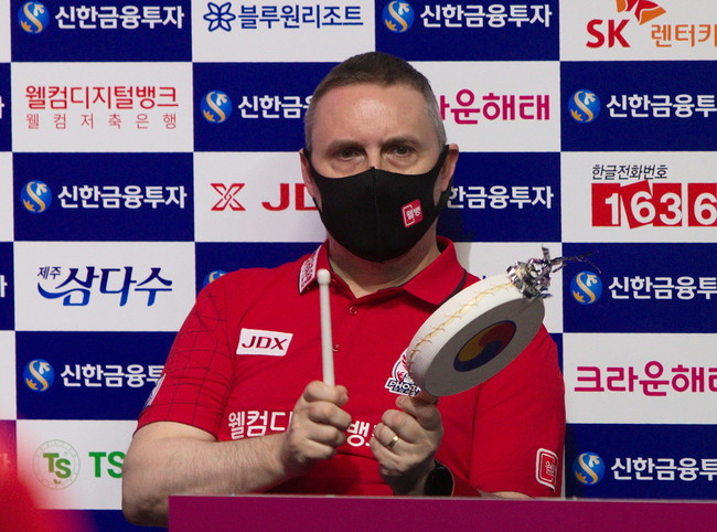 [브릴리언트 빌리아드=김철호 기자] 9월 21부터 25일까지 5일간 고양 빛마루 방송센타에서 열리고 있는 2020-2021 pba 팀 리그에서 그동안 조용히 경기하던 당구경기가 새로운 팀 시스템으로 경기장이 술렁거린다. 3쿠션 세계 최강 벨기에의 쿠드롱은 웰컴저축은행 월컴피닉스의 팀리더가 되고 자신의 경기 뿐아니라 팀 선수들의 경기에 응원에도 열중이다. 언제 이런 모습을 어느나라 어느경기에서 볼 수 있을까?
