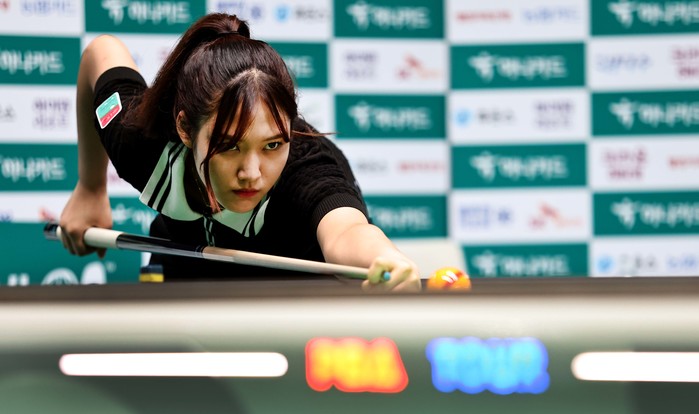‘여자 아마추어 1위’ 출신 한지은은 25점제(50분 시간제한)로 치러진 1차 예선서 ‘18세’ 김사랑을 23이닝만에 25:6으로 꺾고 가볍게 통과했다. 선공을 잡은 한지은은 7이닝까지 7:5 근소한 리드를 유지하다 김사랑이 연속 공타로 돌아선 틈을 타 차곡차곡 점수를 쌓았다. 13:5로 앞선 18이닝서는 하이런 5점을 쓸어담으며 18:5 승기를 잡았고, 23이닝만에 25점을 채워 25:6으로 경기를 승리로 마무리했다. 한지은은 19일 오전11시 PQ라운드서 고은경을 상대로 64강 진출에 도전한다.