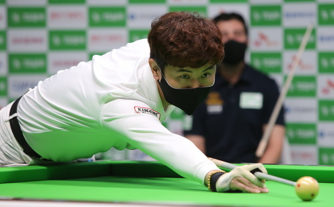 ▲ 준결승에 두번째로 진출한 한국의 김현우선수가 볼을 조준하고 있다 . |